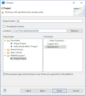 Let's say I want to work on files from the Linux Device Tree Compiler (DTC), and that I've cloned a copy of the repository (git://git.kernel.org/pub/scm/utils/dtc/dtc.git) to c:/usr1/fun/dvkit/tutorial/dtc.