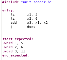 The unique aspects of the instruction unit tests are stored in the test files themselves. Here is test for the add instruction: