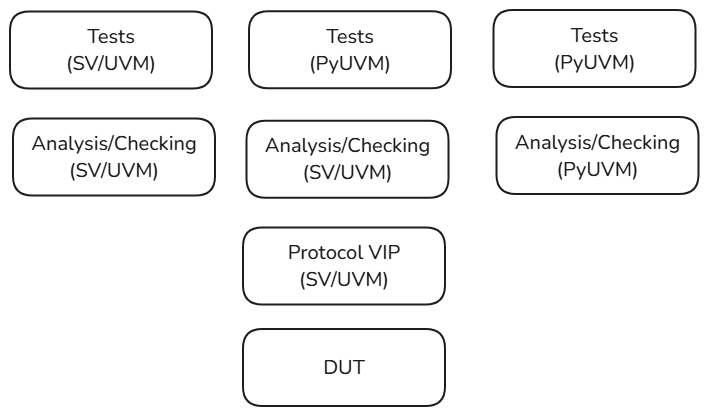 We’ll look at an architecture for modular multi-language/multi-environment UVM protocol VIP in a future series of posts. But, next week, we’ll spend some time looking at the suite of PyHDL-IF examples and how to run them.